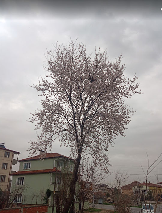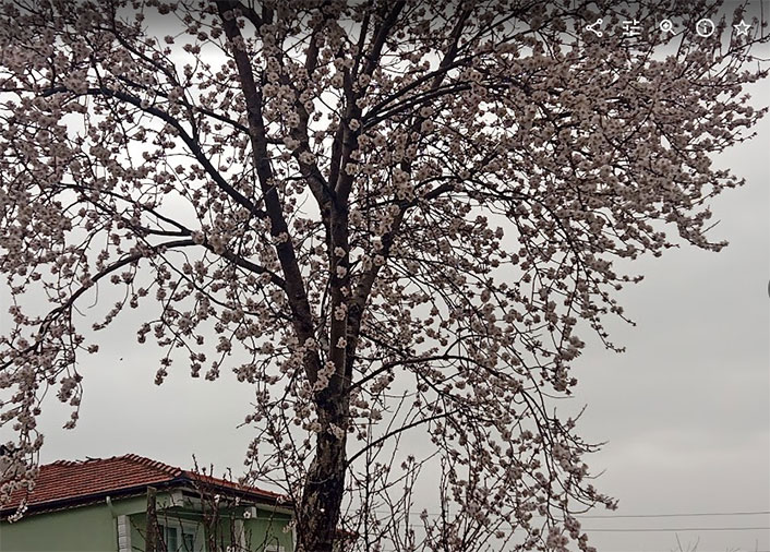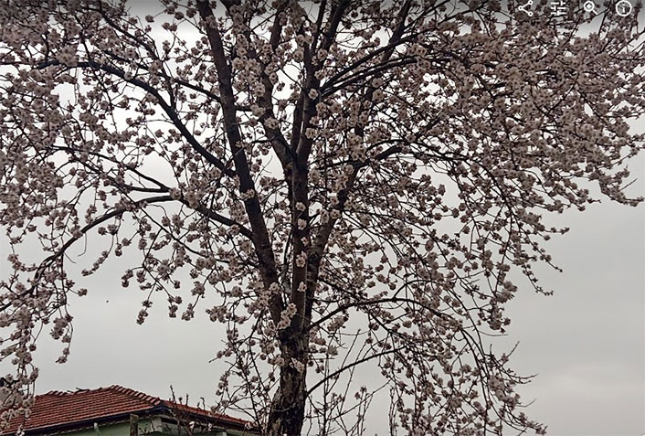 Cumhuriyet Mahallesinde bir badem ağacında çiçekleri açmış gören Bal Arıları da beyaz çiçeklerden polen toplamaya başladılar.