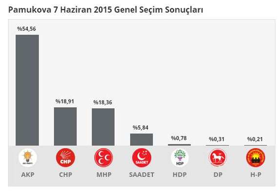CHP ise 7 Haziranda aldığı 3, 347 oyunu, 1 kasım da düşürdü, 506 seçmen CHP ye verdiği oyu geri aldı. MHP ise 7 Haziranda aldığı 3,224 oyunun 984 ünü bu seçimde kaybetti, MHP ye 7 Haziranda oy veren 984 seçmen oylarını Büyük İhtimalle AKP ye verdiler. Saadet Parti de b.u seçimde 118 oyunu kaptırdı, HDP de 7 Haziranda aldığı 138 oyunu bu seçimde düşürdü 40 seçmeni AKP ye gitti. DP te 19 seçmenini AKP ye kaptırdı. DSP de 24 seçmenini akp ye kaptırdı. BTP de oyununun bir kısmını AKP ye kaptıran parti oldu. BTP den ise AKP ye 9 seçmen gitti.