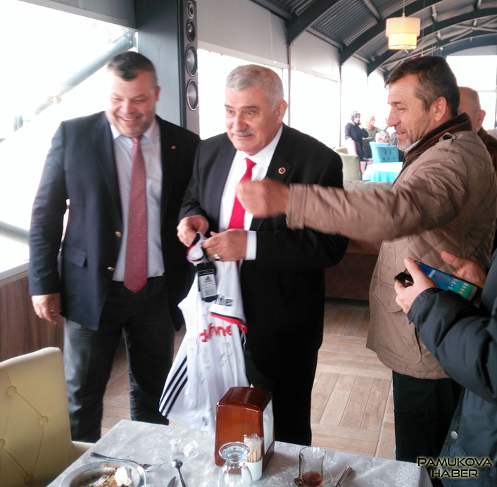 Ak Parti’nin yeniden Belediye Başkan adayı seçiler Cevat Keser’i Gölpark Tesislerinde ziyaret eden İstanbul Beşiktalılar Dernek Başkanı Zafer Şengül ve iki yönetim kurulu üyesi arkadaşı Başkan Keser’e Beşiktaş forması hediye ettiler.